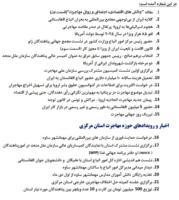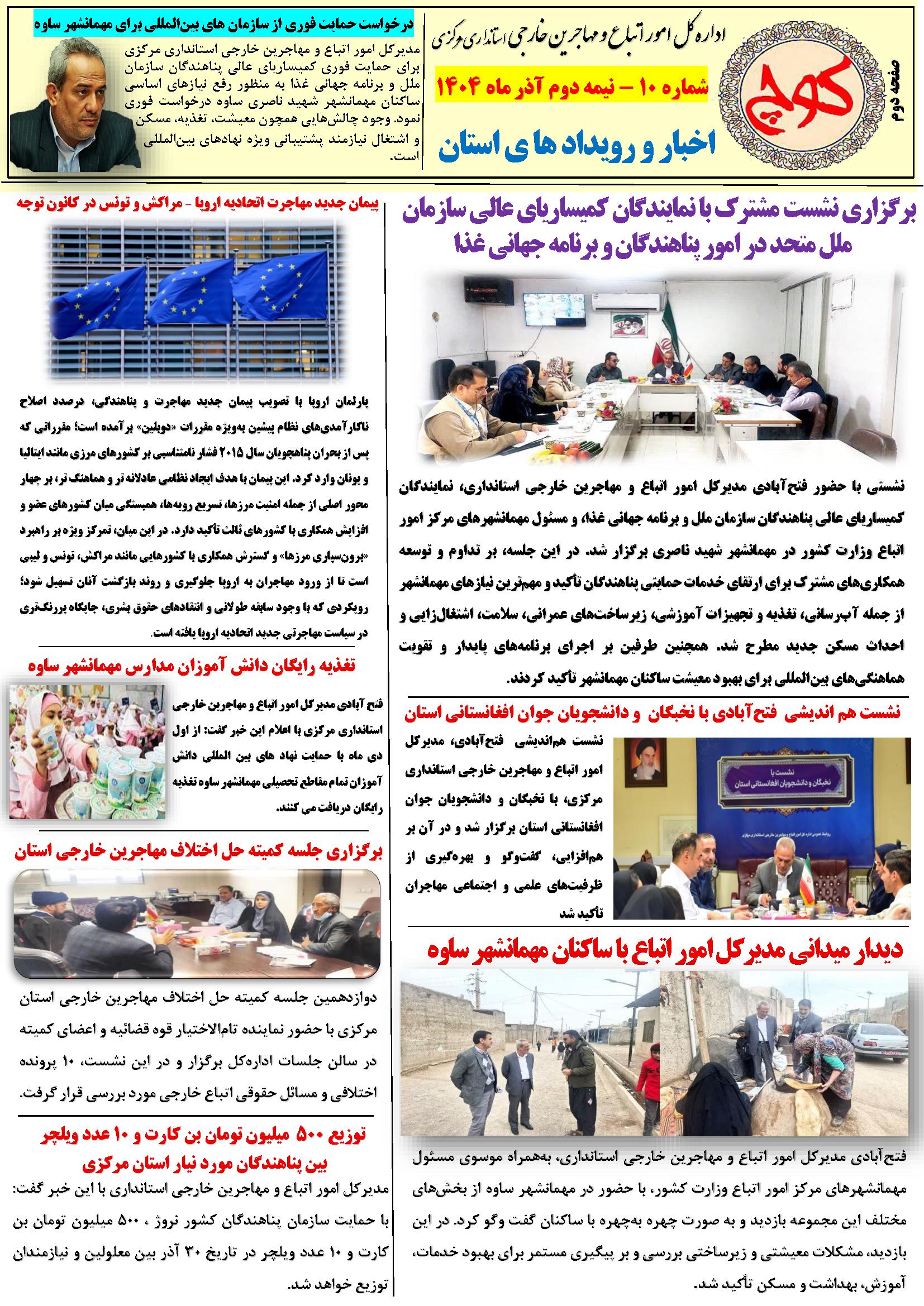 دهمین شماره نشریه کوچ ۰۳ دی ۱۴۰۴ | ۰۹:۲۱ کد : ۵۷۵۲۰ اطلاعیه ارسال به دیگران نام شما ایمیل شما ایمیل دریافتکننده ارسال انصراف تعداد بازدید:۲۱ دهممین شماره نشریه کوچ، توسط دفتر امور اتباع و مهاجرین خارجی استان مرکزی منتشر گردید.