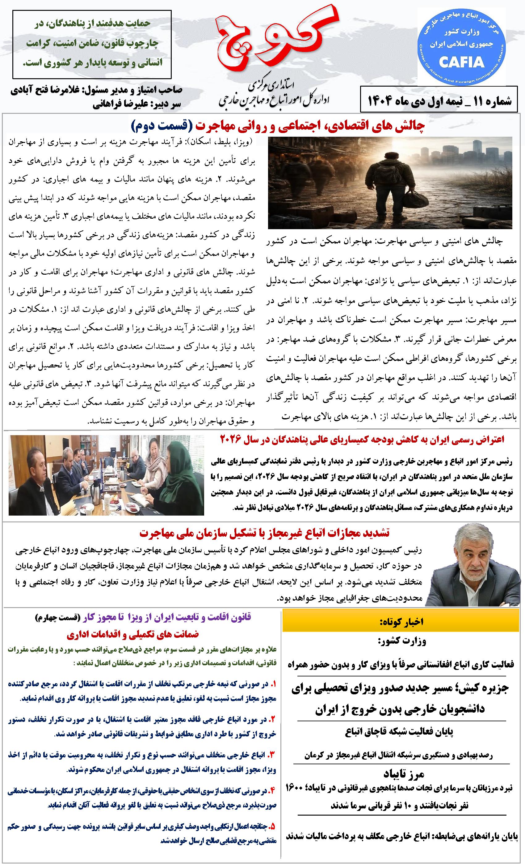 کلیدواژه‌ها: نشریه کوچ یازدهمین شماره نشریه کوچ اتباع دفتر امور اتباع امور اتباع مرکز امور اتباع