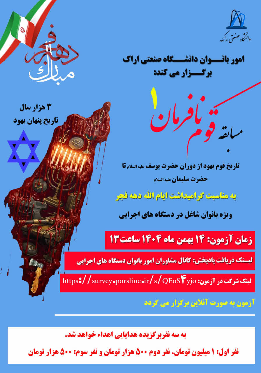 مسابقه قوم نافرمان ۰۸ بهمن ۱۴۰۴ | ۱۰:۳۹ کد : ۵۷۷۴۳ اطلاعیه ارسال به دیگران نام شما ایمیل شما ایمیل دریافتکننده ارسال انصراف تعداد بازدید:۶۸ برگزاری مسابقه قوم نافرمان، در ایام الله دهه فجر